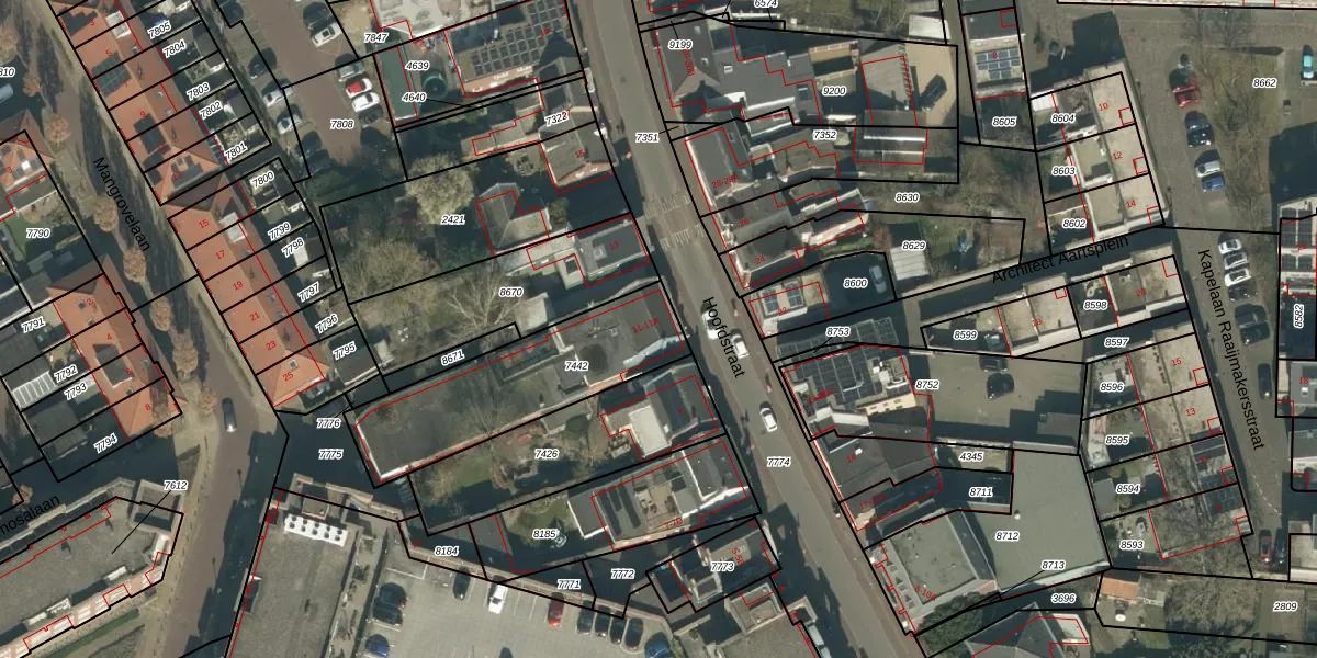 Het perceel waarop Hoofdstraat 11 staat heeft een oppervlakte van 641 m². Dit is een groot perceel. De perceeloppervlakte wordt geregistreerd door het Kadaster. Gedetailleerde informatie over de maten van dit perceel kunt u vinden in het rapport Kadastrale kaart met maatvoering van Hoofdstraat 11.