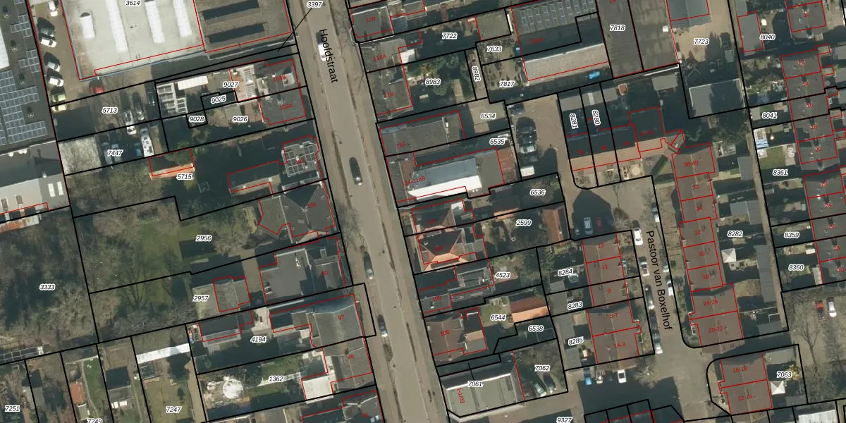 Gebruik de zoekbalk of klik op een perceel voor informatie over de adressen binnen dit perceel.