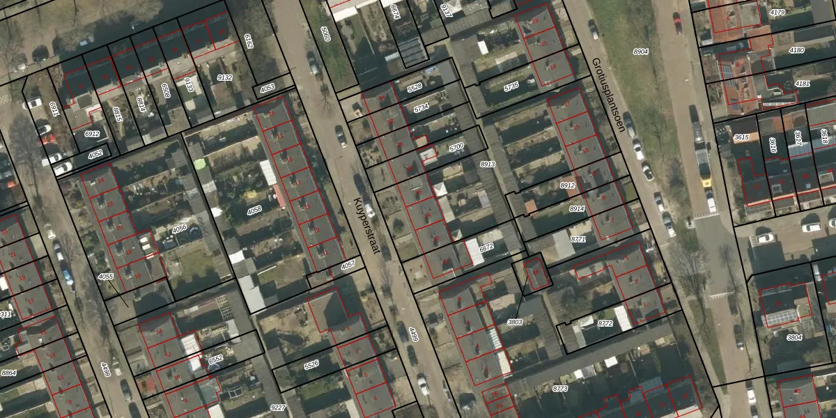 Het perceel waarop Kuyperstraat 14 staat heeft een oppervlakte van 1275 m². Dit is een zeer groot perceel. De perceeloppervlakte wordt geregistreerd door het Kadaster. Gedetailleerde informatie over de maten van dit perceel kunt u vinden in het rapport Kadastrale kaart met maatvoering van Kuyperstraat 14.
