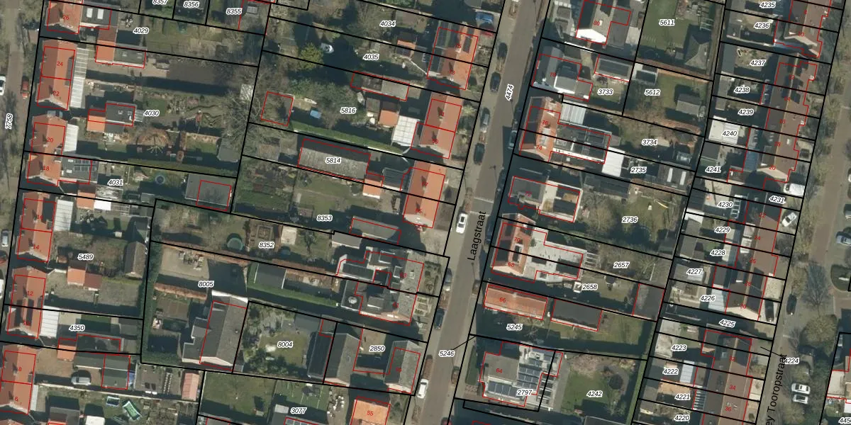 Laagstraat 65 is gelegen op kadastraal perceel GZE00A8353. Deze kadastrale aanduiding is uniek en wordt gebruikt door het Kadaster om eigendomsrechten en andere zakelijke rechten vast te leggen. Het perceel maakt onderdeel uit van de kadastrale gemeente Gilze en Rijen.