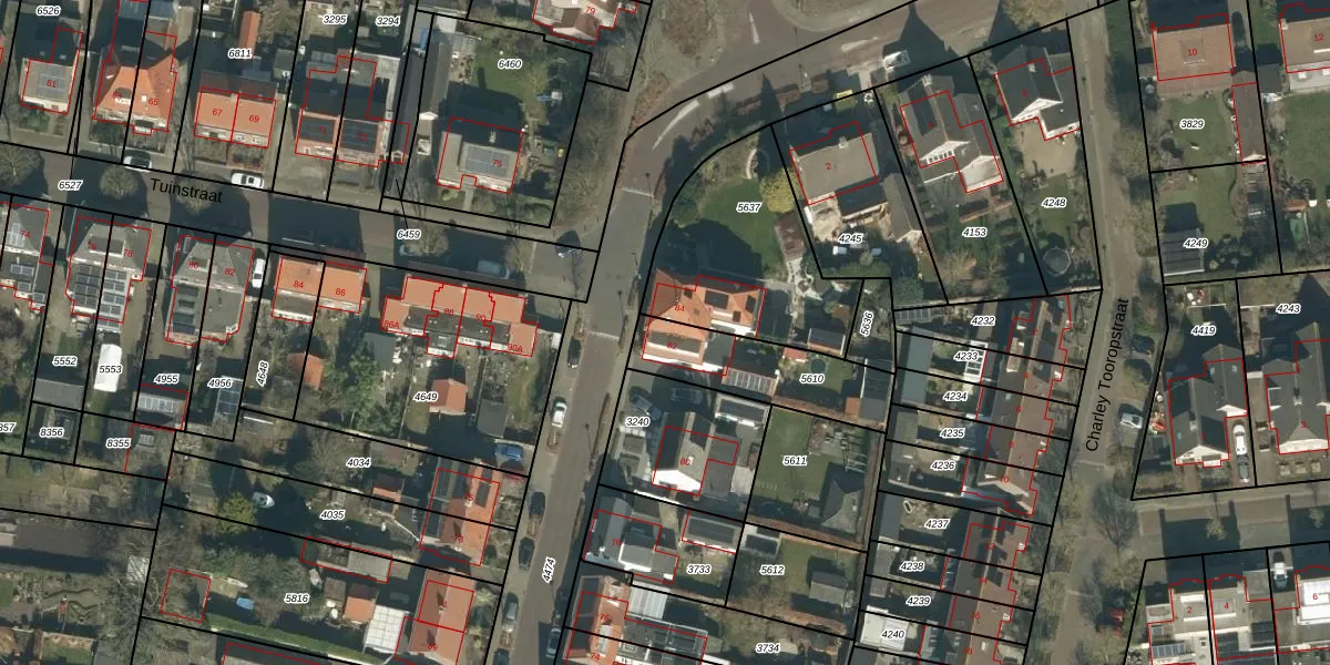 Het perceel waarop Laagstraat 82 staat heeft een oppervlakte van 353 m². Dit is een groot perceel. De perceeloppervlakte wordt geregistreerd door het Kadaster. Gedetailleerde informatie over de maten van dit perceel kunt u vinden in het rapport Kadastrale kaart met maatvoering van Laagstraat 82.