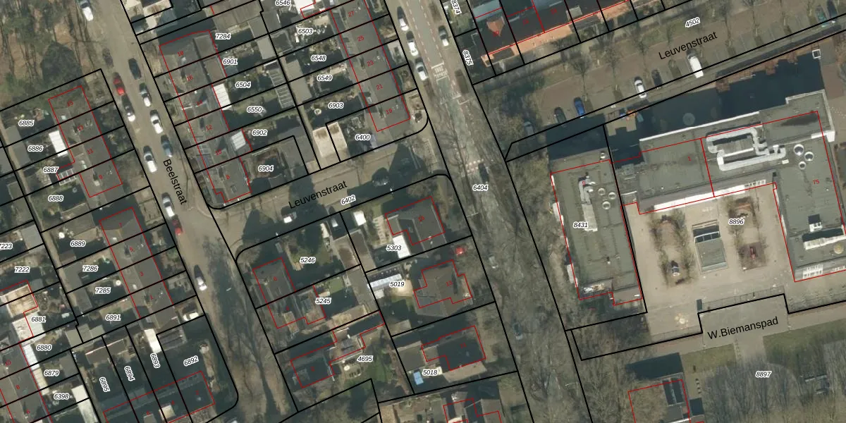 Het perceel waarop Leuvenstraat 15 staat heeft een oppervlakte van 429 m². Dit is een groot perceel. De perceeloppervlakte wordt geregistreerd door het Kadaster. Gedetailleerde informatie over de maten van dit perceel kunt u vinden in het rapport Kadastrale kaart met maatvoering van Leuvenstraat 15.
