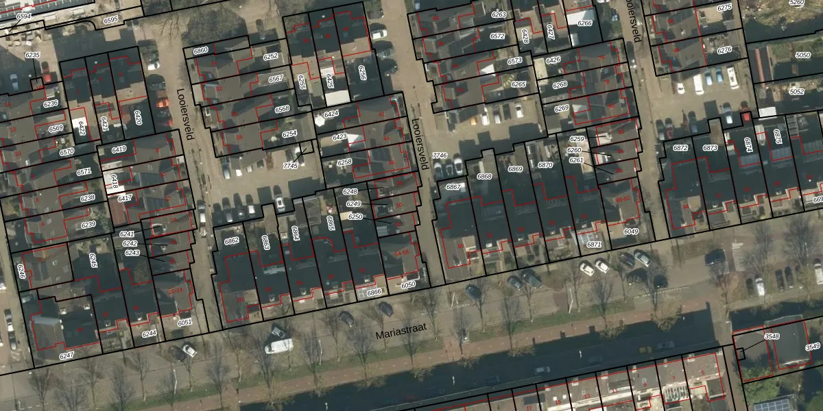 Het perceel waarop Looiersveld 50 staat heeft een oppervlakte van 54 m². Dit is een klein perceel. De perceeloppervlakte wordt geregistreerd door het Kadaster. Gedetailleerde informatie over de maten van dit perceel kunt u vinden in het rapport Kadastrale kaart met maatvoering van Looiersveld 50.