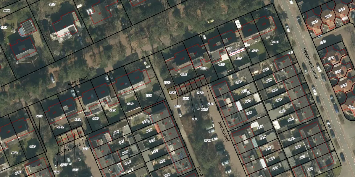 Het perceel waarop Mackayhof 21 staat heeft een oppervlakte van 19 m². Dit is een klein perceel. De perceeloppervlakte wordt geregistreerd door het Kadaster. Gedetailleerde informatie over de maten van dit perceel kunt u vinden in het rapport Kadastrale kaart met maatvoering van Mackayhof 21.