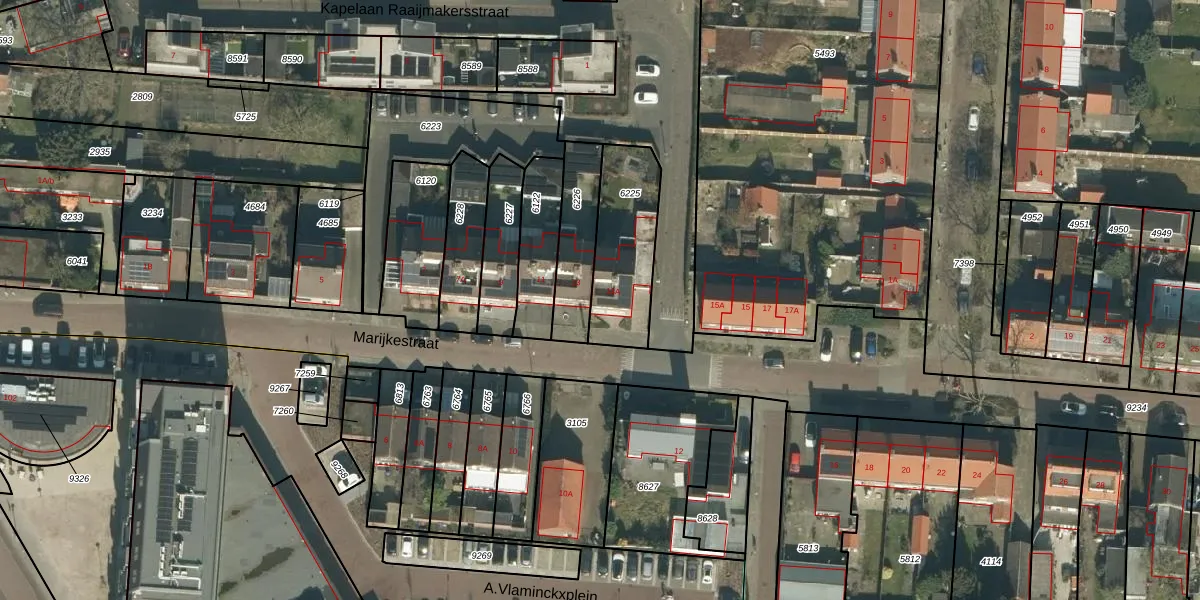 Marijkestraat 13-A is gelegen op kadastraal perceel GZE00A6225. Deze kadastrale aanduiding is uniek en wordt gebruikt door het Kadaster om eigendomsrechten en andere zakelijke rechten vast te leggen. Het perceel maakt onderdeel uit van de kadastrale gemeente Gilze en Rijen.