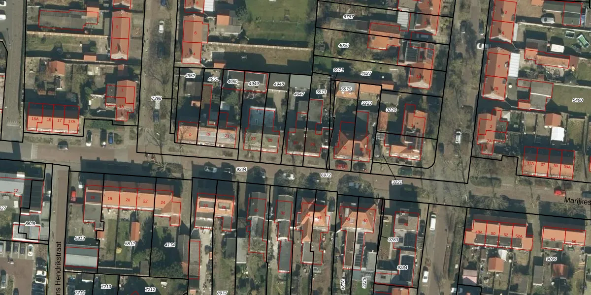 Het perceel waarop Marijkestraat 27 staat heeft een oppervlakte van 228 m². Dit is een middelgroot perceel. De perceeloppervlakte wordt geregistreerd door het Kadaster. Gedetailleerde informatie over de maten van dit perceel kunt u vinden in het rapport Kadastrale kaart met maatvoering van Marijkestraat 27.