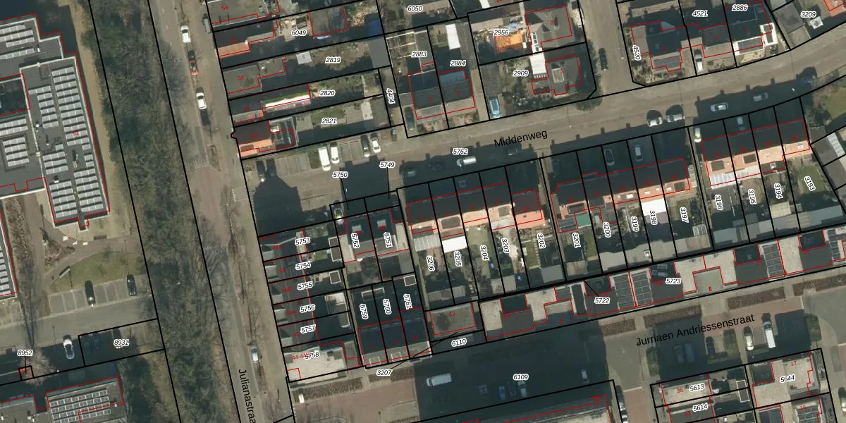 Het perceel waarop Middenweg 2 staat heeft een oppervlakte van 219 m². Dit is een middelgroot perceel. De perceeloppervlakte wordt geregistreerd door het Kadaster. Gedetailleerde informatie over de maten van dit perceel kunt u vinden in het rapport Kadastrale kaart met maatvoering van Middenweg 2.