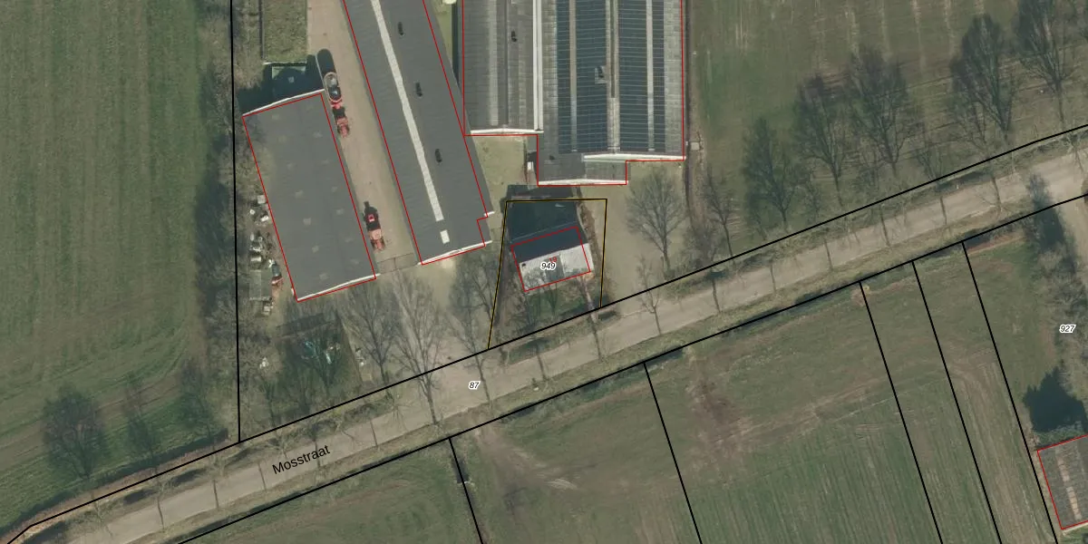 Het perceel waarop Mosstraat 19 staat heeft een oppervlakte van 449 m². Dit is een groot perceel. De perceeloppervlakte wordt geregistreerd door het Kadaster. Gedetailleerde informatie over de maten van dit perceel kunt u vinden in het rapport Kadastrale kaart met maatvoering van Mosstraat 19.