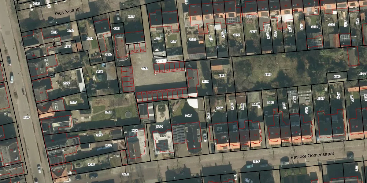 Het perceel waarop Pius X-straat 6-U staat heeft een oppervlakte van 962 m². Dit is een groot perceel. De perceeloppervlakte wordt geregistreerd door het Kadaster. Gedetailleerde informatie over de maten van dit perceel kunt u vinden in het rapport Kadastrale kaart met maatvoering van Pius X-straat 6-U.