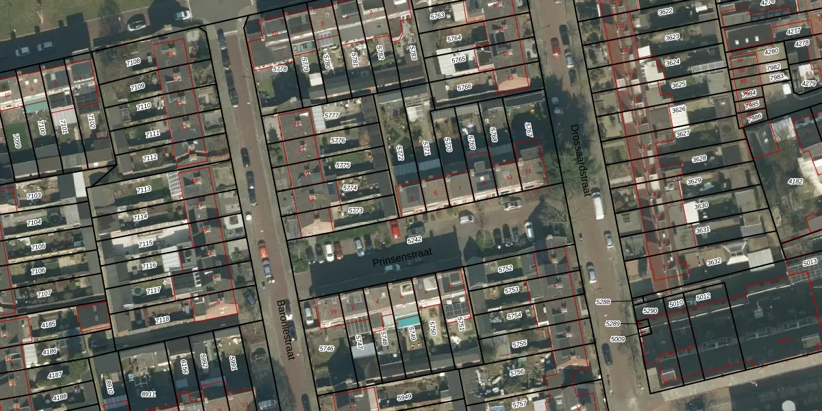 Het perceel waarop Prinsenstraat 3 staat heeft een oppervlakte van 212 m². Dit is een middelgroot perceel. De perceeloppervlakte wordt geregistreerd door het Kadaster. Gedetailleerde informatie over de maten van dit perceel kunt u vinden in het rapport Kadastrale kaart met maatvoering van Prinsenstraat 3.