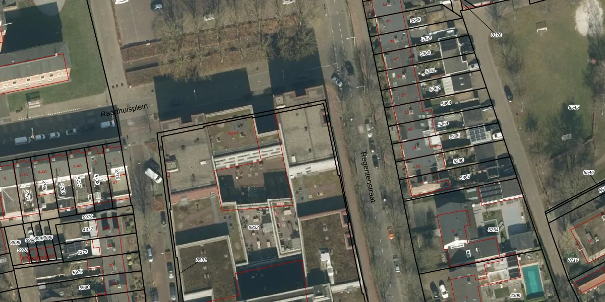 Het perceel waarop Regentenstraat 199 staat heeft een oppervlakte van 5150 m². Dit is een zeer groot perceel. De perceeloppervlakte wordt geregistreerd door het Kadaster. Gedetailleerde informatie over de maten van dit perceel kunt u vinden in het rapport Kadastrale kaart met maatvoering van Regentenstraat 199.