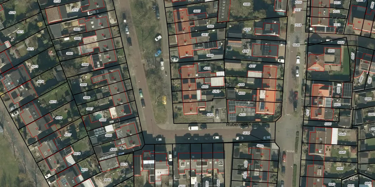 Het perceel waarop Rubenspark 19 staat heeft een oppervlakte van 171 m². Dit is een middelgroot perceel. De perceeloppervlakte wordt geregistreerd door het Kadaster. Gedetailleerde informatie over de maten van dit perceel kunt u vinden in het rapport Kadastrale kaart met maatvoering van Rubenspark 19.