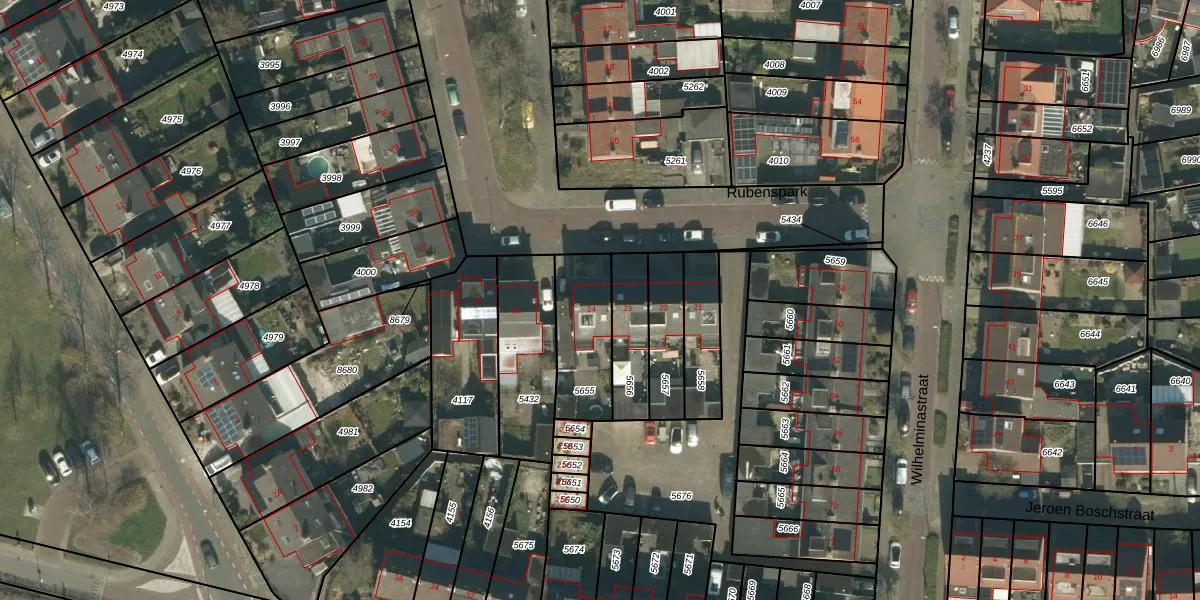 Het perceel waarop Rubenspark 24 staat heeft een oppervlakte van 255 m². Dit is een middelgroot perceel. De perceeloppervlakte wordt geregistreerd door het Kadaster. Gedetailleerde informatie over de maten van dit perceel kunt u vinden in het rapport Kadastrale kaart met maatvoering van Rubenspark 24.