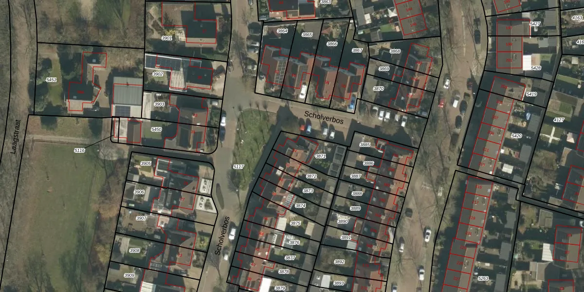 Het perceel waarop Scholverbos 54 staat heeft een oppervlakte van 233 m². Dit is een middelgroot perceel. De perceeloppervlakte wordt geregistreerd door het Kadaster. Gedetailleerde informatie over de maten van dit perceel kunt u vinden in het rapport Kadastrale kaart met maatvoering van Scholverbos 54.