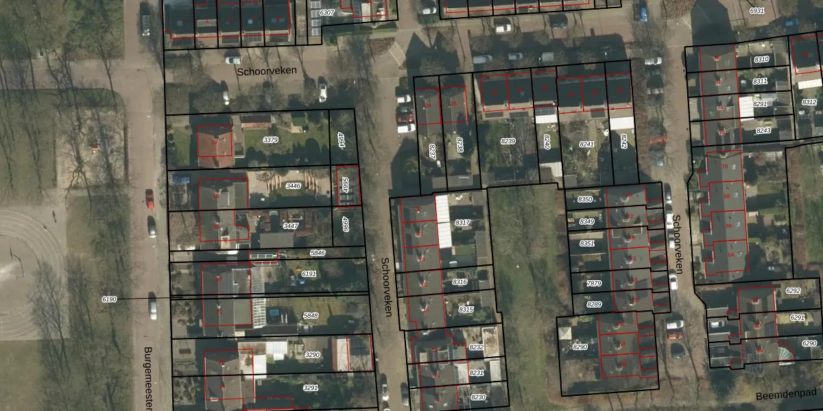 Het perceel waarop Schoorveken 22 staat heeft een oppervlakte van 449 m². Dit is een groot perceel. De perceeloppervlakte wordt geregistreerd door het Kadaster. Gedetailleerde informatie over de maten van dit perceel kunt u vinden in het rapport Kadastrale kaart met maatvoering van Schoorveken 22.