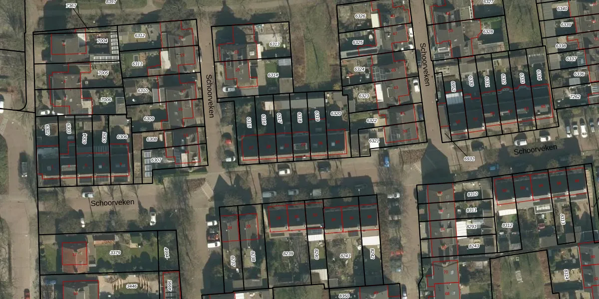 Schoorveken 33 is gelegen op kadastraal perceel GZE00A6318. Deze kadastrale aanduiding is uniek en wordt gebruikt door het Kadaster om eigendomsrechten en andere zakelijke rechten vast te leggen. Het perceel maakt onderdeel uit van de kadastrale gemeente Gilze en Rijen.