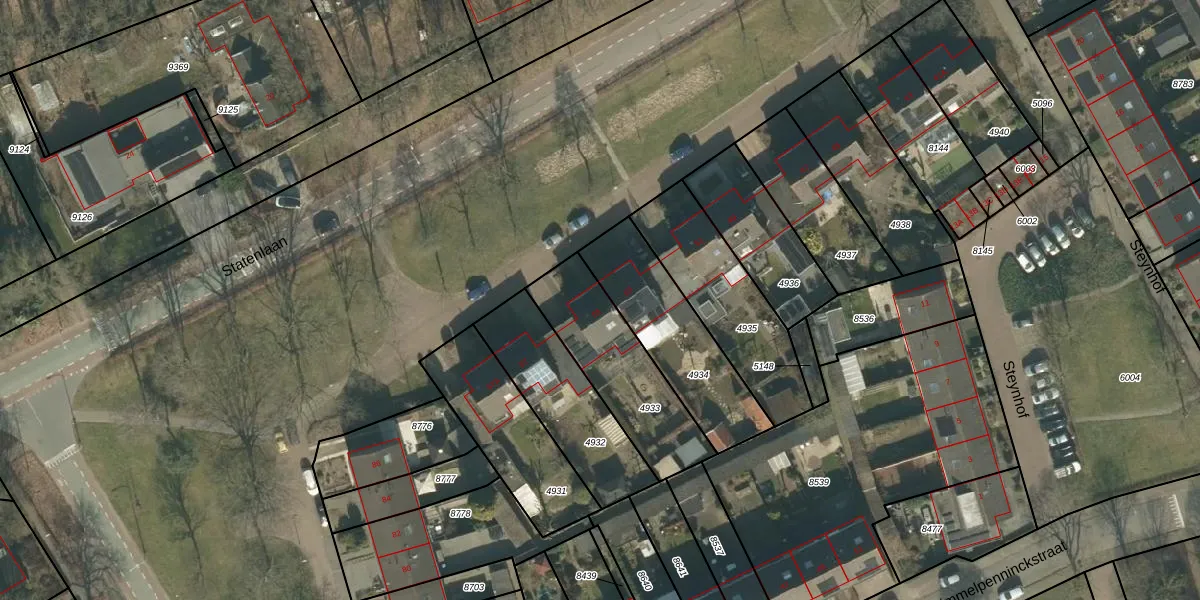 Statenlaan 55 is gelegen op kadastraal perceel GZE00A4933. Deze kadastrale aanduiding is uniek en wordt gebruikt door het Kadaster om eigendomsrechten en andere zakelijke rechten vast te leggen. Het perceel maakt onderdeel uit van de kadastrale gemeente Gilze en Rijen.