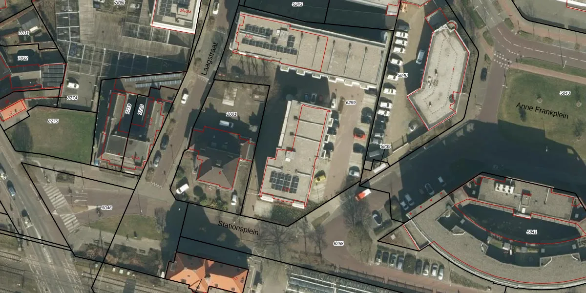 Het perceel waarop Stationsplein 16 staat heeft een oppervlakte van 2870 m². Dit is een zeer groot perceel. De perceeloppervlakte wordt geregistreerd door het Kadaster. Gedetailleerde informatie over de maten van dit perceel kunt u vinden in het rapport Kadastrale kaart met maatvoering van Stationsplein 16.