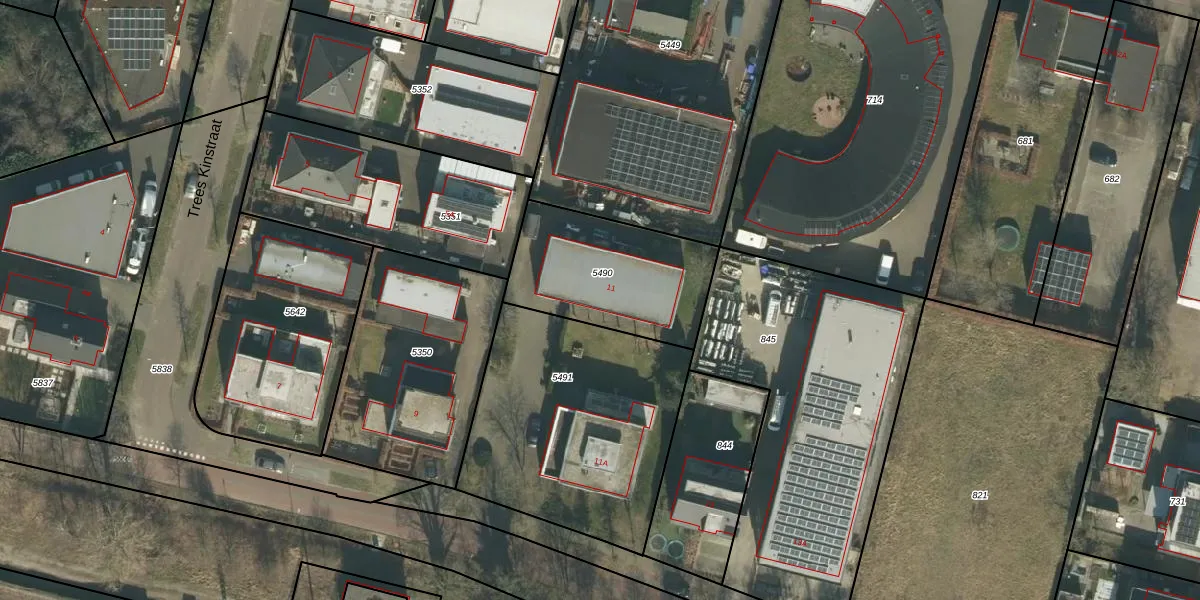 Trees Kinstraat 11 is gelegen op kadastraal perceel GZE00B5490. Deze kadastrale aanduiding is uniek en wordt gebruikt door het Kadaster om eigendomsrechten en andere zakelijke rechten vast te leggen. Het perceel maakt onderdeel uit van de kadastrale gemeente Gilze en Rijen.