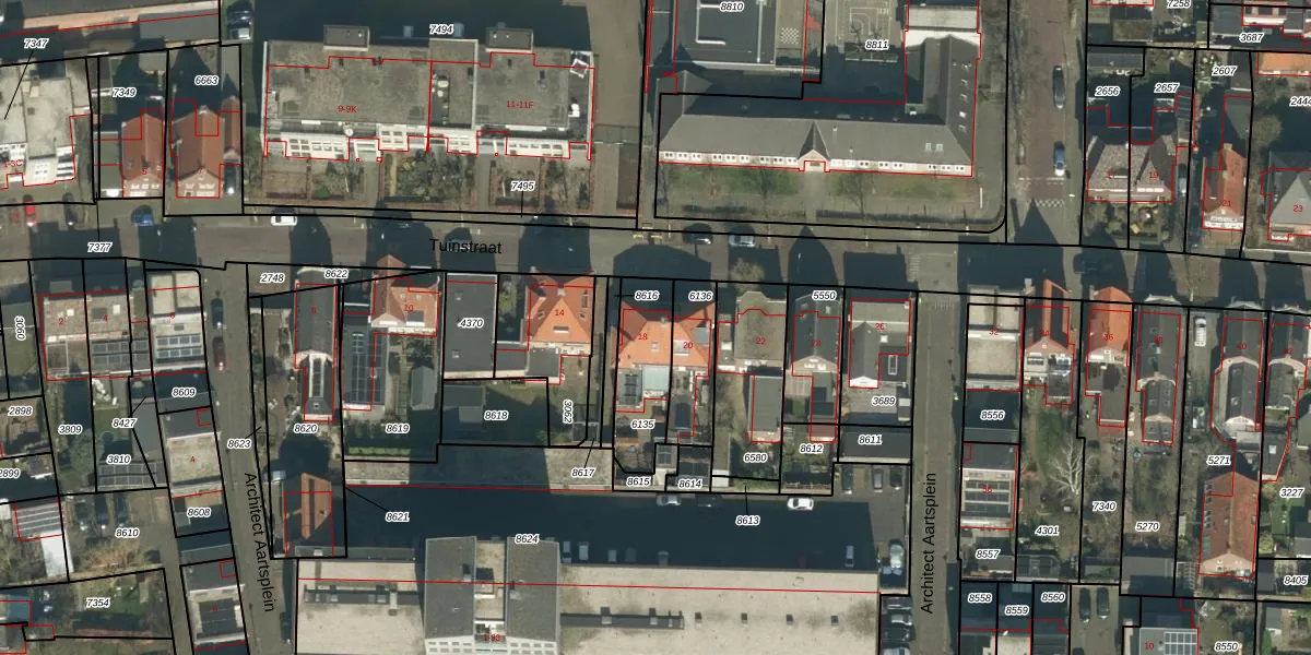 Het perceel waarop Tuinstraat 18 staat heeft een oppervlakte van 232 m². Dit is een middelgroot perceel. De perceeloppervlakte wordt geregistreerd door het Kadaster. Gedetailleerde informatie over de maten van dit perceel kunt u vinden in het rapport Kadastrale kaart met maatvoering van Tuinstraat 18.