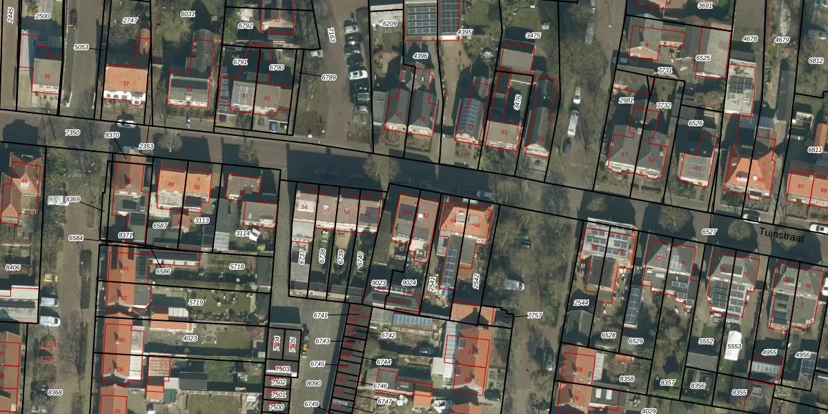 Het perceel waarop Tuinstraat 60-A staat heeft een oppervlakte van 218 m². Dit is een middelgroot perceel. De perceeloppervlakte wordt geregistreerd door het Kadaster. Gedetailleerde informatie over de maten van dit perceel kunt u vinden in het rapport Kadastrale kaart met maatvoering van Tuinstraat 60-A.