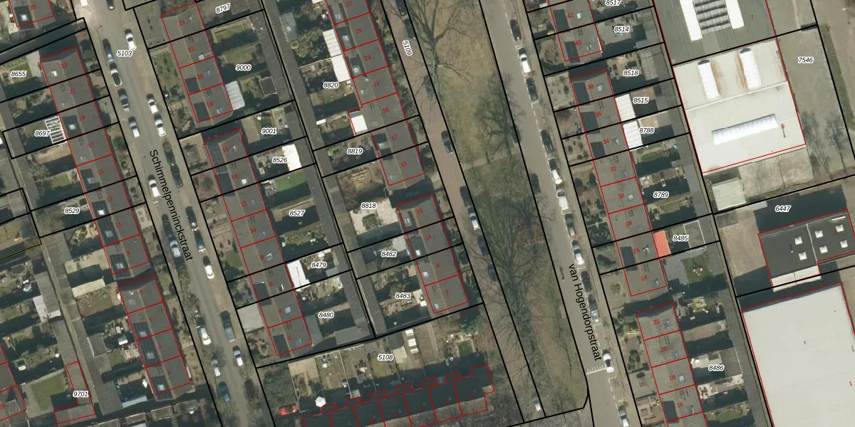 Het perceel waarop van Hogendorpstraat 13 staat heeft een oppervlakte van 495 m². Dit is een groot perceel. De perceeloppervlakte wordt geregistreerd door het Kadaster. Gedetailleerde informatie over de maten van dit perceel kunt u vinden in het rapport Kadastrale kaart met maatvoering van van Hogendorpstraat 13.