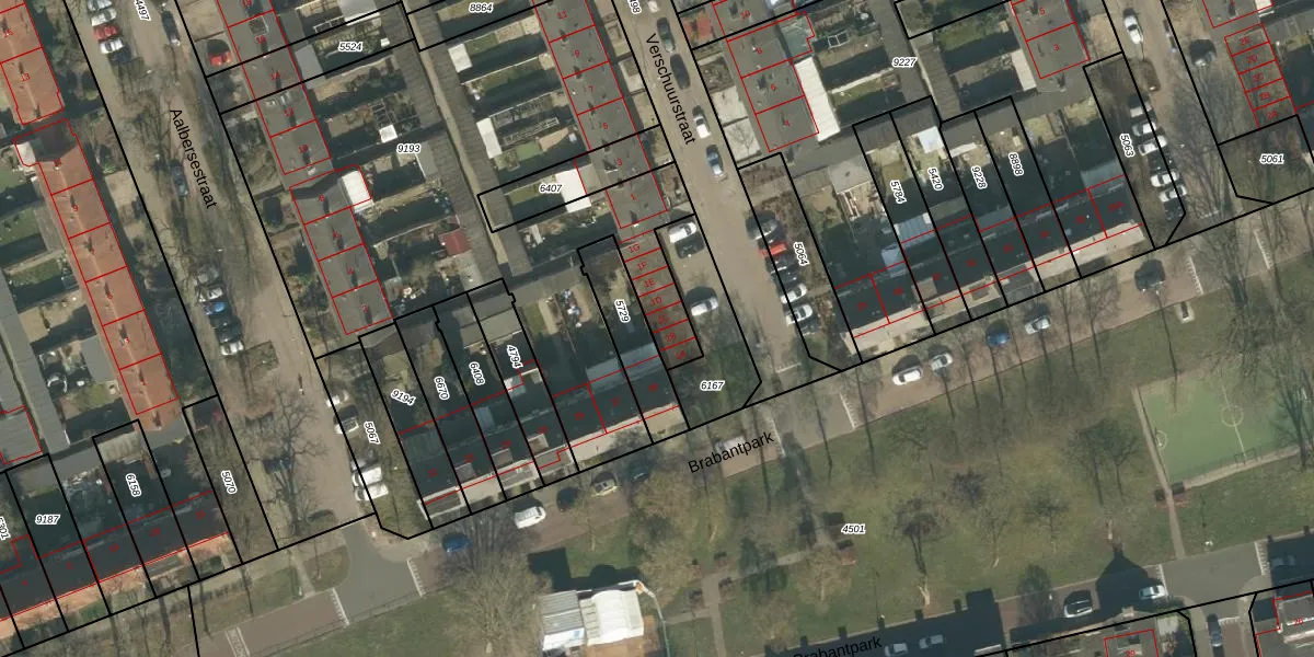 Het perceel waarop Verschuurstraat 1-C staat heeft een oppervlakte van 2683 m². Dit is een zeer groot perceel. De perceeloppervlakte wordt geregistreerd door het Kadaster. Gedetailleerde informatie over de maten van dit perceel kunt u vinden in het rapport Kadastrale kaart met maatvoering van Verschuurstraat 1-C.