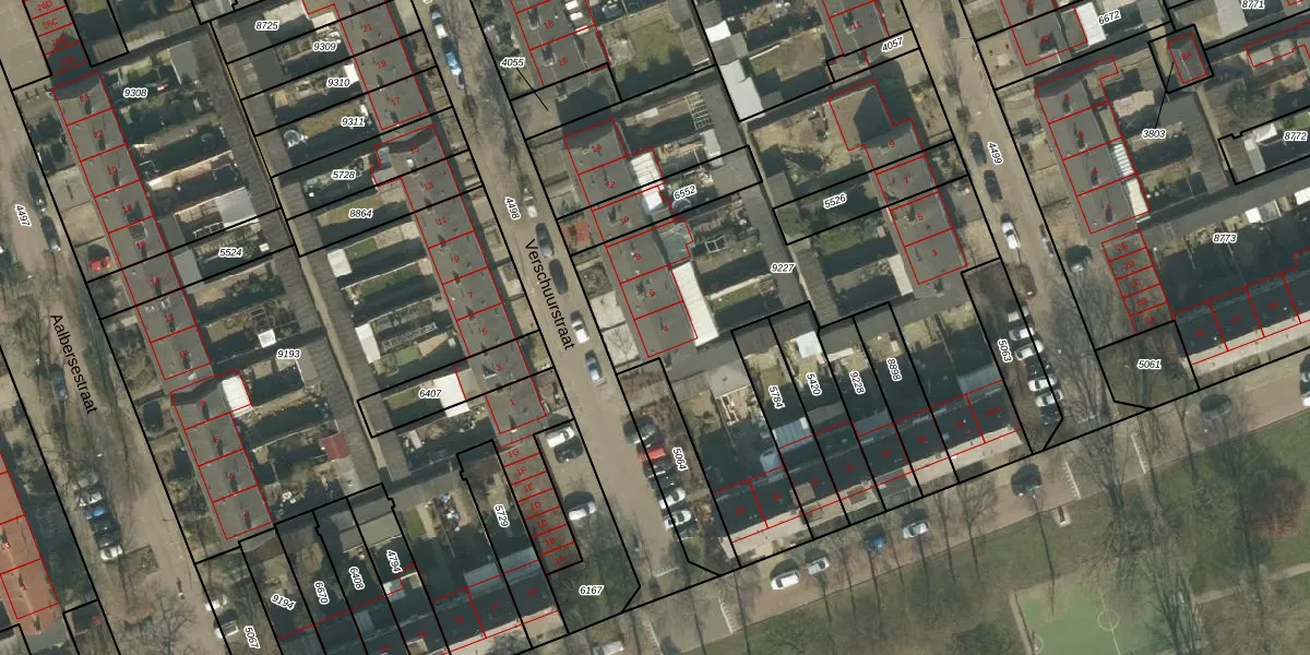 Het perceel waarop Verschuurstraat 4 staat heeft een oppervlakte van 2638 m². Dit is een zeer groot perceel. De perceeloppervlakte wordt geregistreerd door het Kadaster. Gedetailleerde informatie over de maten van dit perceel kunt u vinden in het rapport Kadastrale kaart met maatvoering van Verschuurstraat 4.