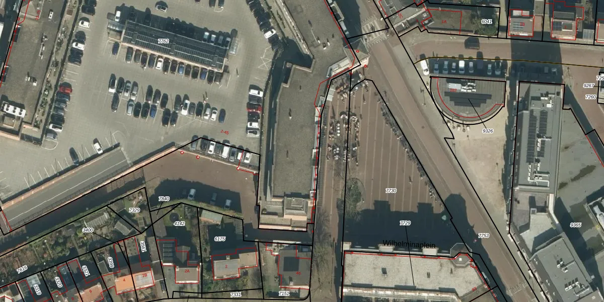 Het perceel waarop Wilhelminaplein 35 staat heeft een oppervlakte van 9248 m². Dit is een zeer groot perceel. De perceeloppervlakte wordt geregistreerd door het Kadaster. Gedetailleerde informatie over de maten van dit perceel kunt u vinden in het rapport Kadastrale kaart met maatvoering van Wilhelminaplein 35.
