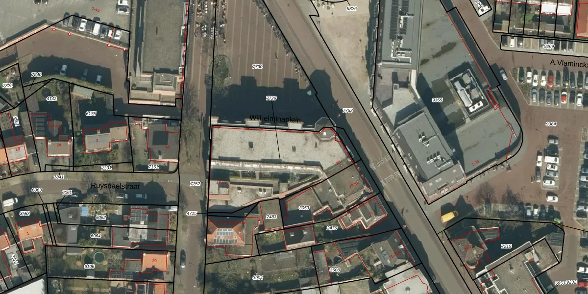Het perceel waarop Wilhelminaplein 49 staat heeft een oppervlakte van 1068 m². Dit is een zeer groot perceel. De perceeloppervlakte wordt geregistreerd door het Kadaster. Gedetailleerde informatie over de maten van dit perceel kunt u vinden in het rapport Kadastrale kaart met maatvoering van Wilhelminaplein 49.