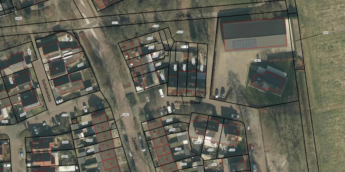 Wouwerbroek 1 is gelegen op kadastraal perceel GZE00B4121. Deze kadastrale aanduiding is uniek en wordt gebruikt door het Kadaster om eigendomsrechten en andere zakelijke rechten vast te leggen. Het perceel maakt onderdeel uit van de kadastrale gemeente Gilze en Rijen.