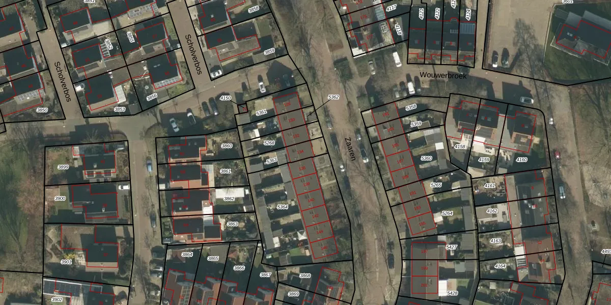 Zaaren 134 is gelegen op kadastraal perceel GZE00B5363. Deze kadastrale aanduiding is uniek en wordt gebruikt door het Kadaster om eigendomsrechten en andere zakelijke rechten vast te leggen. Het perceel maakt onderdeel uit van de kadastrale gemeente Gilze en Rijen.
