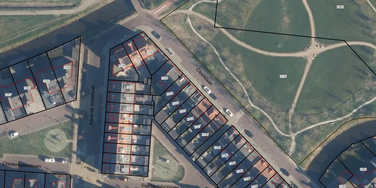 Het perceel waarop Clovislaan 7 staat heeft een oppervlakte van 157 m². Dit is een middelgroot perceel. De perceeloppervlakte wordt geregistreerd door het Kadaster. Gedetailleerde informatie over de maten van dit perceel kunt u vinden in het rapport Kadastrale kaart met maatvoering van Clovislaan 7.