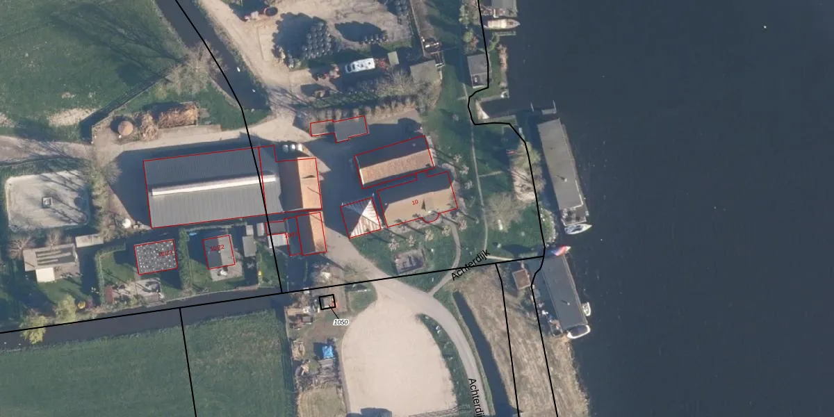 Het perceel waarop Achterdijk 10 staat heeft een oppervlakte van 6190 m². Dit is een zeer groot perceel. De perceeloppervlakte wordt geregistreerd door het Kadaster. Gedetailleerde informatie over de maten van dit perceel kunt u vinden in het rapport Kadastrale kaart met maatvoering van Achterdijk 10.