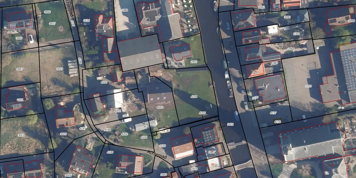 Achterpad 9 is gelegen op kadastraal perceel AKM01D4204. Deze kadastrale aanduiding is uniek en wordt gebruikt door het Kadaster om eigendomsrechten en andere zakelijke rechten vast te leggen. Het perceel maakt onderdeel uit van de kadastrale gemeente Alkemade.