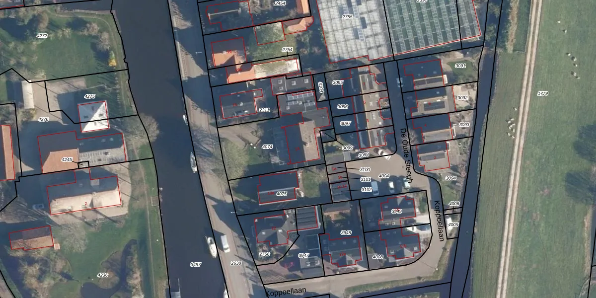 Koppoellaan 13 is gelegen op kadastraal perceel AKM01D4074. Deze kadastrale aanduiding is uniek en wordt gebruikt door het Kadaster om eigendomsrechten en andere zakelijke rechten vast te leggen. Het perceel maakt onderdeel uit van de kadastrale gemeente Alkemade.