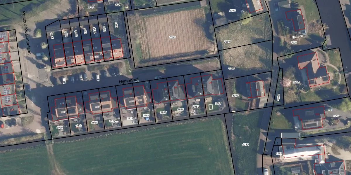 Het perceel waarop Nijmanhof 16 staat heeft een oppervlakte van 243 m². Dit is een middelgroot perceel. De perceeloppervlakte wordt geregistreerd door het Kadaster. Gedetailleerde informatie over de maten van dit perceel kunt u vinden in het rapport Kadastrale kaart met maatvoering van Nijmanhof 16.