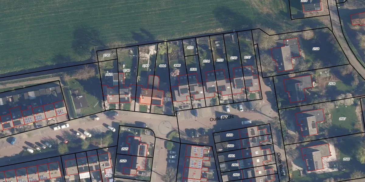 Het perceel waarop Oude Bocht 1 staat heeft een oppervlakte van 373 m². Dit is een groot perceel. De perceeloppervlakte wordt geregistreerd door het Kadaster. Gedetailleerde informatie over de maten van dit perceel kunt u vinden in het rapport Kadastrale kaart met maatvoering van Oude Bocht 1.