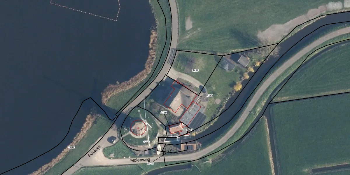 Het perceel waarop Poeldijk 8-a staat heeft een oppervlakte van 1543 m². Dit is een zeer groot perceel. De perceeloppervlakte wordt geregistreerd door het Kadaster. Gedetailleerde informatie over de maten van dit perceel kunt u vinden in het rapport Kadastrale kaart met maatvoering van Poeldijk 8-a.