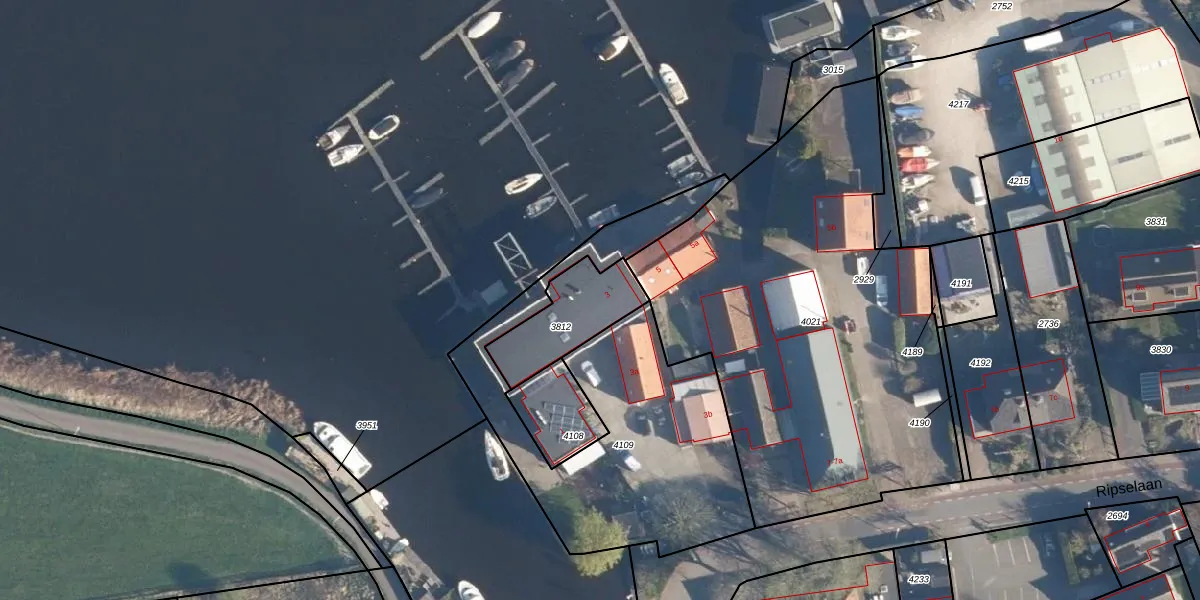 Ripselaan 3 is gelegen op kadastraal perceel AKM01D3812. Deze kadastrale aanduiding is uniek en wordt gebruikt door het Kadaster om eigendomsrechten en andere zakelijke rechten vast te leggen. Het perceel maakt onderdeel uit van de kadastrale gemeente Alkemade.