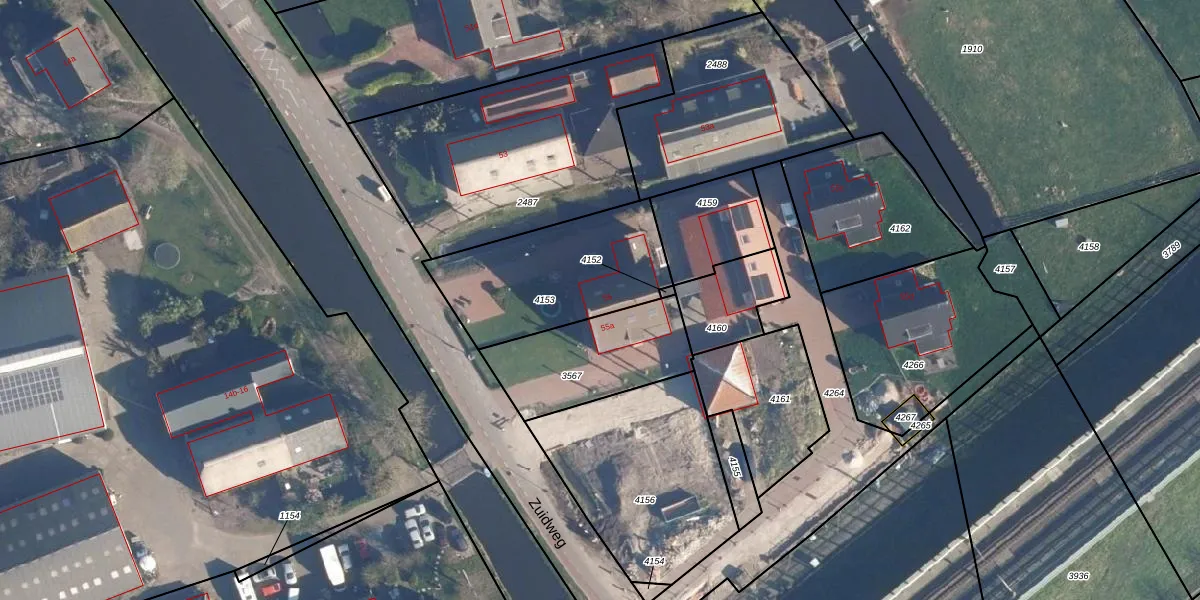 Het perceel waarop Zuidweg 55 staat heeft een oppervlakte van 611 m². Dit is een groot perceel. De perceeloppervlakte wordt geregistreerd door het Kadaster. Gedetailleerde informatie over de maten van dit perceel kunt u vinden in het rapport Kadastrale kaart met maatvoering van Zuidweg 55.