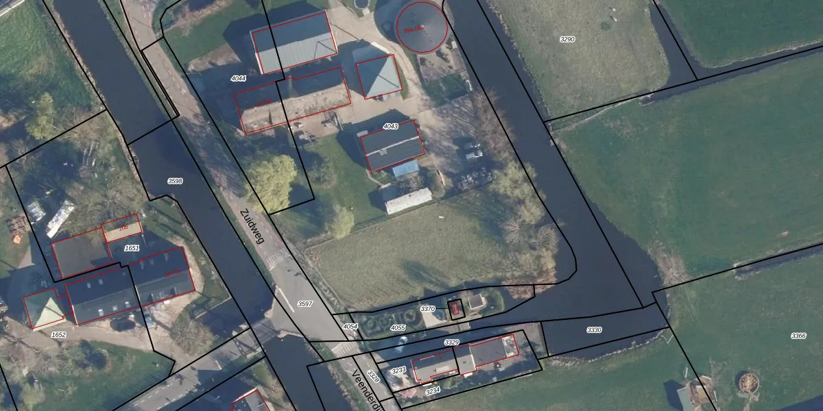 Het perceel waarop Zuidweg 59-s staat heeft een oppervlakte van 4877 m². Dit is een zeer groot perceel. De perceeloppervlakte wordt geregistreerd door het Kadaster. Gedetailleerde informatie over de maten van dit perceel kunt u vinden in het rapport Kadastrale kaart met maatvoering van Zuidweg 59-s.