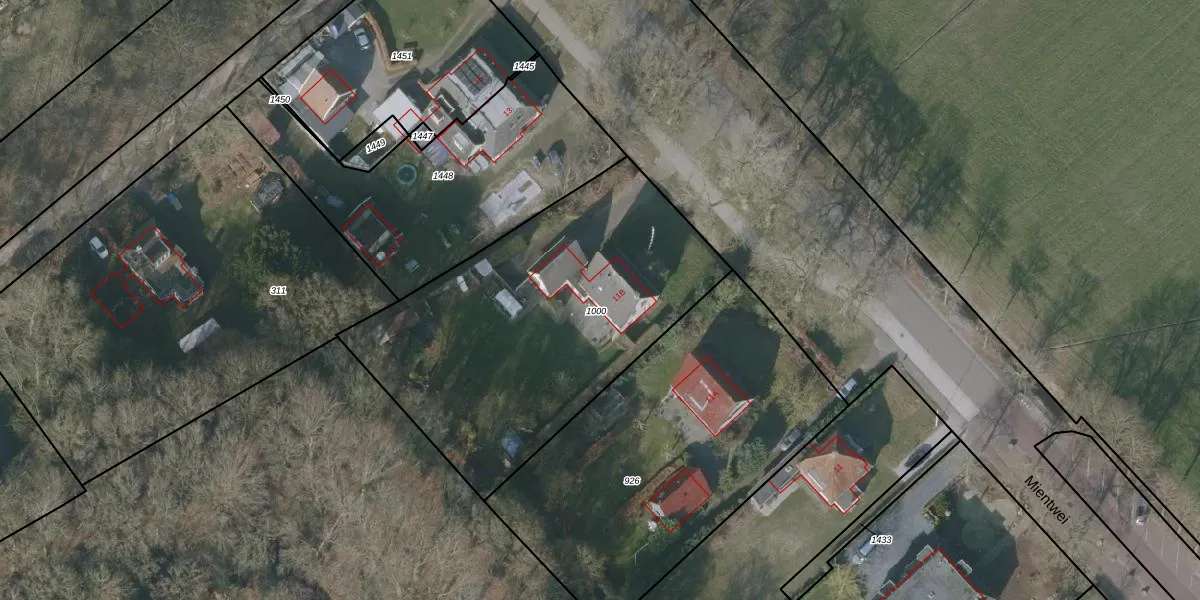 Het perceel waarop Mientwei 11-B staat heeft een oppervlakte van 1760 m². Dit is een zeer groot perceel. De perceeloppervlakte wordt geregistreerd door het Kadaster. Gedetailleerde informatie over de maten van dit perceel kunt u vinden in het rapport Kadastrale kaart met maatvoering van Mientwei 11-B.