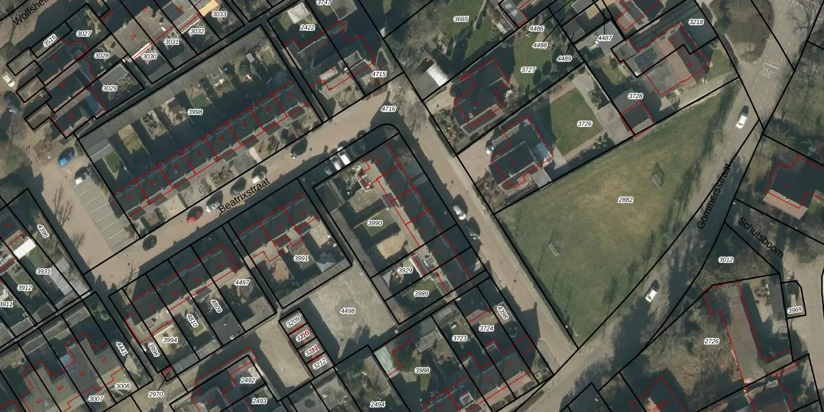 Het perceel waarop Beatrixstraat 7 staat heeft een oppervlakte van 652 m². Dit is een groot perceel. De perceeloppervlakte wordt geregistreerd door het Kadaster. Gedetailleerde informatie over de maten van dit perceel kunt u vinden in het rapport Kadastrale kaart met maatvoering van Beatrixstraat 7.