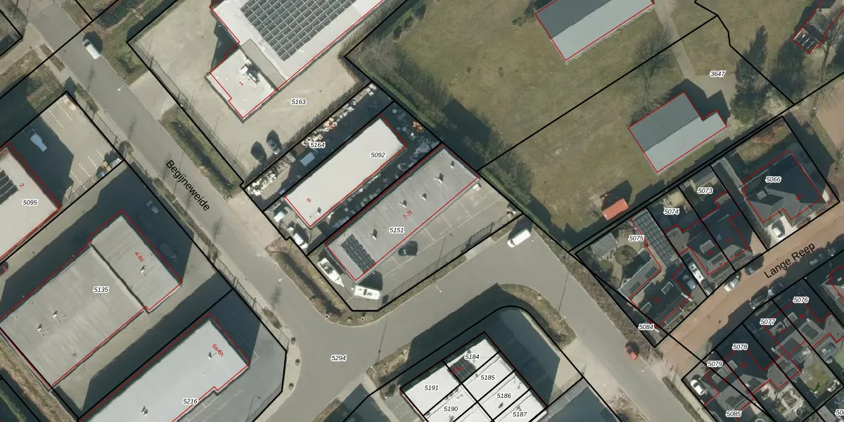 Het perceel waarop Begijneweide 7-d staat heeft een oppervlakte van 990 m². Dit is een groot perceel. De perceeloppervlakte wordt geregistreerd door het Kadaster. Gedetailleerde informatie over de maten van dit perceel kunt u vinden in het rapport Kadastrale kaart met maatvoering van Begijneweide 7-d.