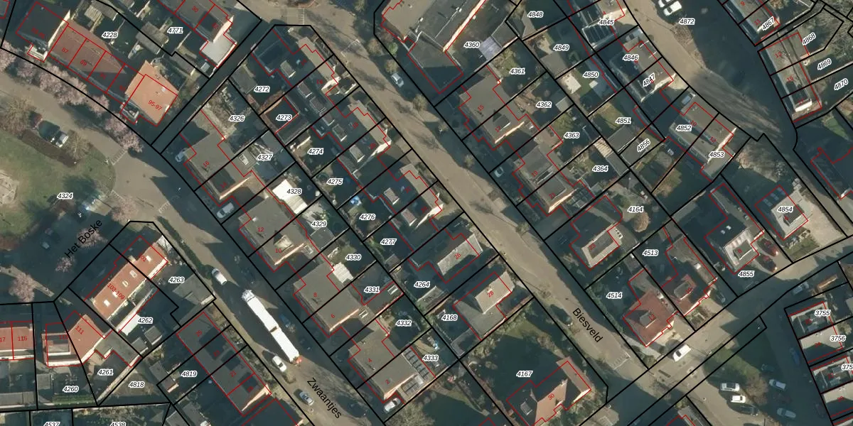 Het perceel waarop Biesveld 24 staat heeft een oppervlakte van 220 m². Dit is een middelgroot perceel. De perceeloppervlakte wordt geregistreerd door het Kadaster. Gedetailleerde informatie over de maten van dit perceel kunt u vinden in het rapport Kadastrale kaart met maatvoering van Biesveld 24.