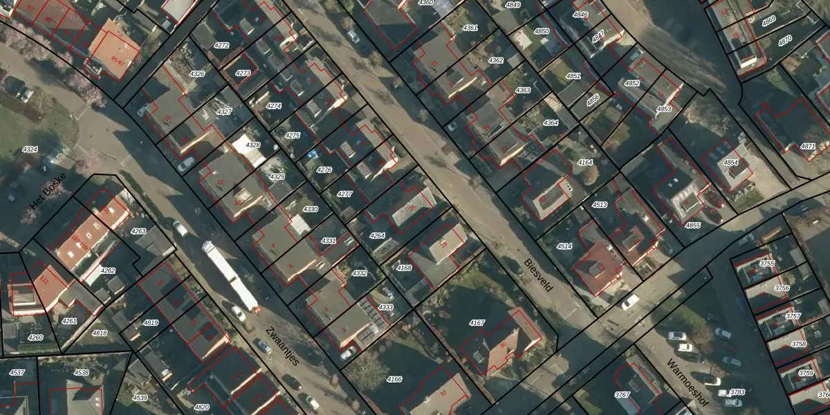 Gebruik de zoekbalk of klik op een perceel voor informatie over de adressen binnen dit perceel.