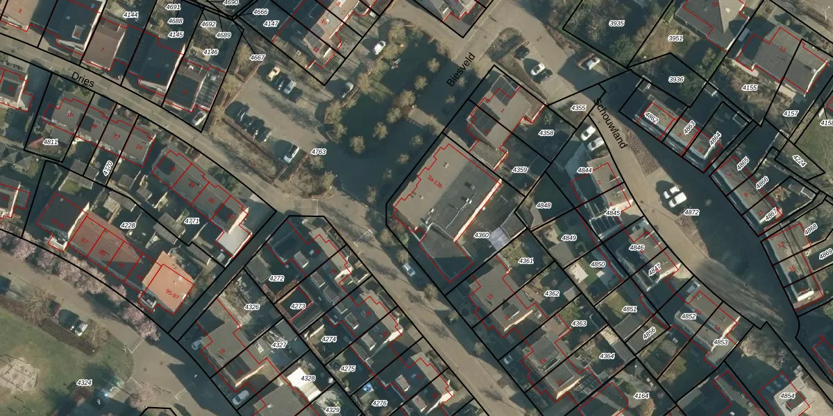 Biesveld 9 is gelegen op kadastraal perceel RBG01B4360. Deze kadastrale aanduiding is uniek en wordt gebruikt door het Kadaster om eigendomsrechten en andere zakelijke rechten vast te leggen. Het perceel maakt onderdeel uit van de kadastrale gemeente Rijsbergen.