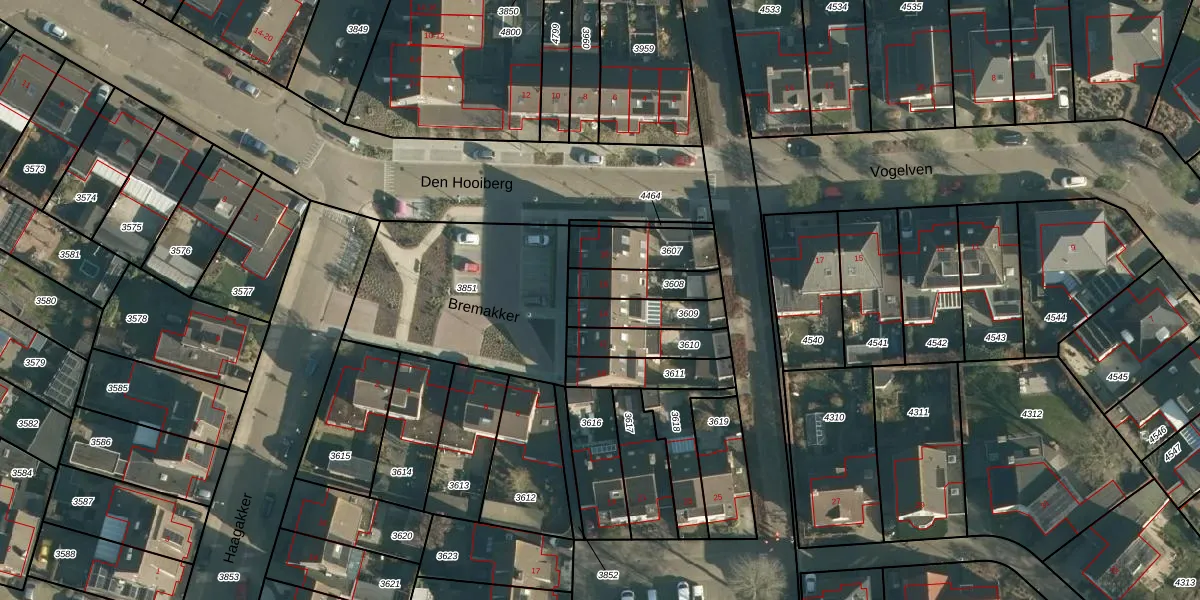 Gebruik de zoekbalk of klik op een perceel voor informatie over de adressen binnen dit perceel.