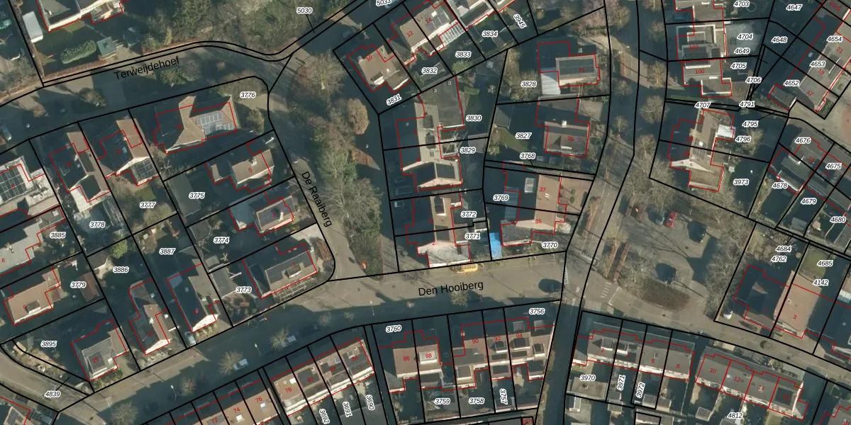 De Raaiberg 4 is gelegen op kadastraal perceel RBG01B3772. Deze kadastrale aanduiding is uniek en wordt gebruikt door het Kadaster om eigendomsrechten en andere zakelijke rechten vast te leggen. Het perceel maakt onderdeel uit van de kadastrale gemeente Rijsbergen.